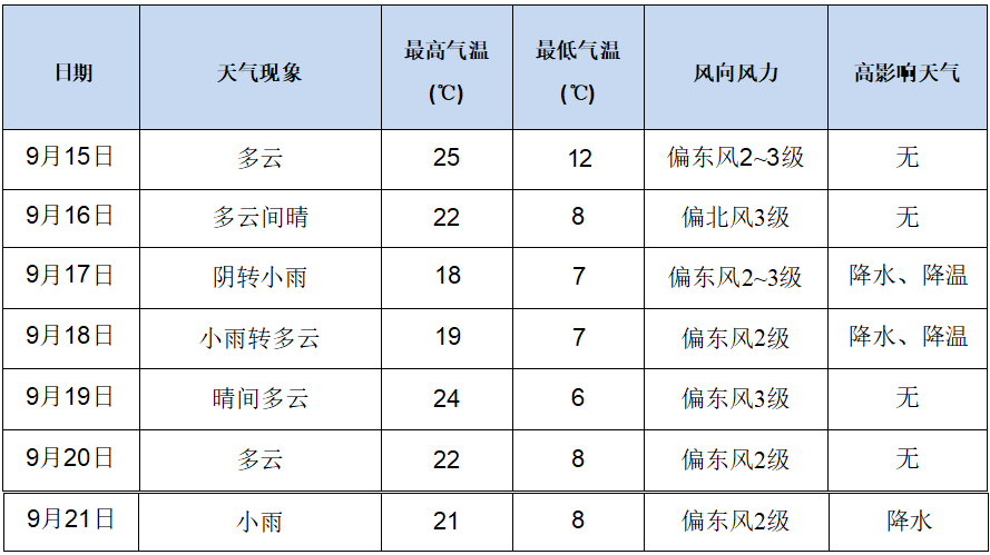 一、未來一周(9月15日-9月21日)天氣趨勢預(yù)報