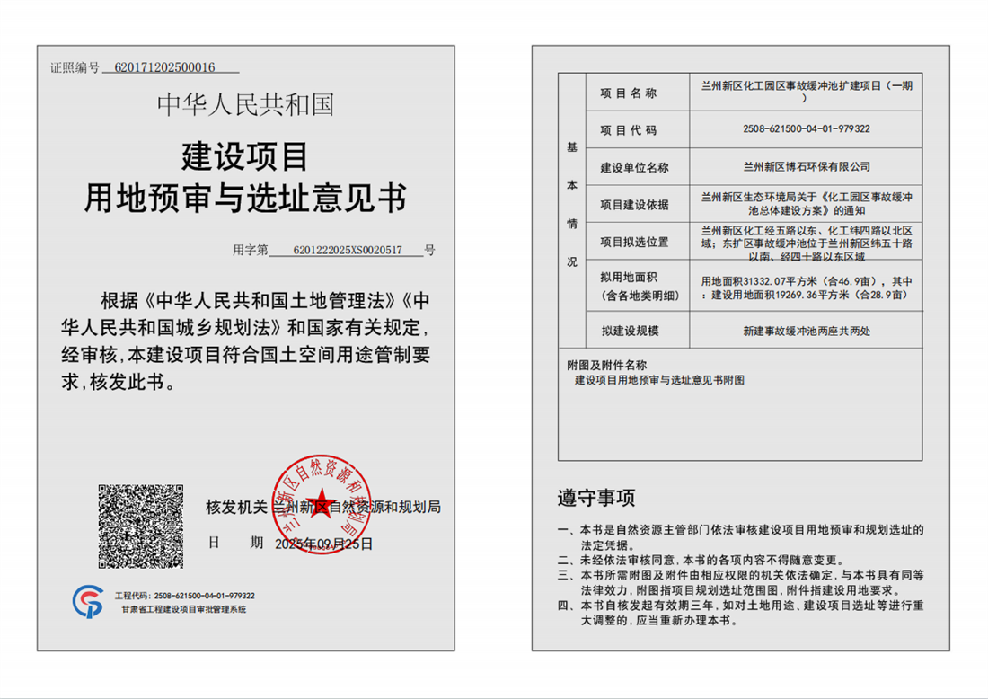 關于公示蘭州新區化工園區事故緩沖池擴建項目(一期)《建設項目用地預審與選址意見書》的公告