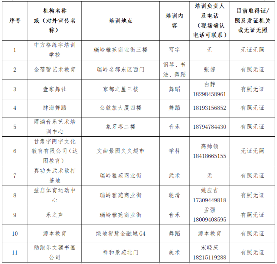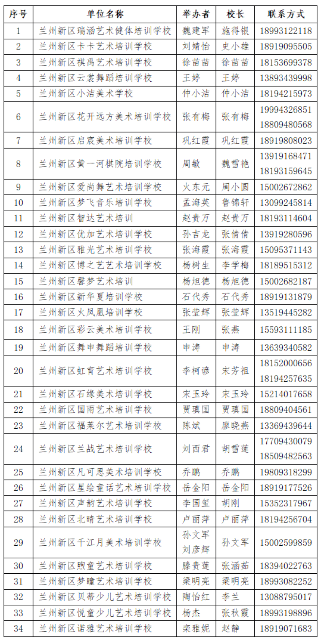 根據(jù)《中共中央辦公廳、國(guó)務(wù)院辦公廳關(guān)于進(jìn)一步減輕義務(wù)教育階段學(xué)生作業(yè)負(fù)擔(dān)和校外培訓(xùn)負(fù)擔(dān)的意見(jiàn)》和《甘肅省教育廳關(guān)于進(jìn)一步推進(jìn)減輕義務(wù)教育階段學(xué)生作業(yè)負(fù)擔(dān)和校外培訓(xùn)負(fù)擔(dān)工作的通知》(甘教基一函〔2021〕4號(hào))的要求,截止2025年9月30日,經(jīng)蘭州新區(qū)教育和衛(wèi)生健康委員會(huì)(疾病和預(yù)防控制局)審核,現(xiàn)將蘭州新區(qū)符合辦學(xué)條件的34所民辦校外培訓(xùn)“白名單”和存在無(wú)證辦學(xué)行為11家培訓(xùn)機(jī)構(gòu)的“黑名單”予以公示,請(qǐng)廣大家長(zhǎng)與學(xué)子認(rèn)真參閱。